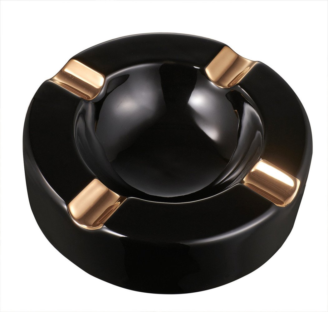 Midas Black & Gold Round Ceramic Cigar Ashtray
