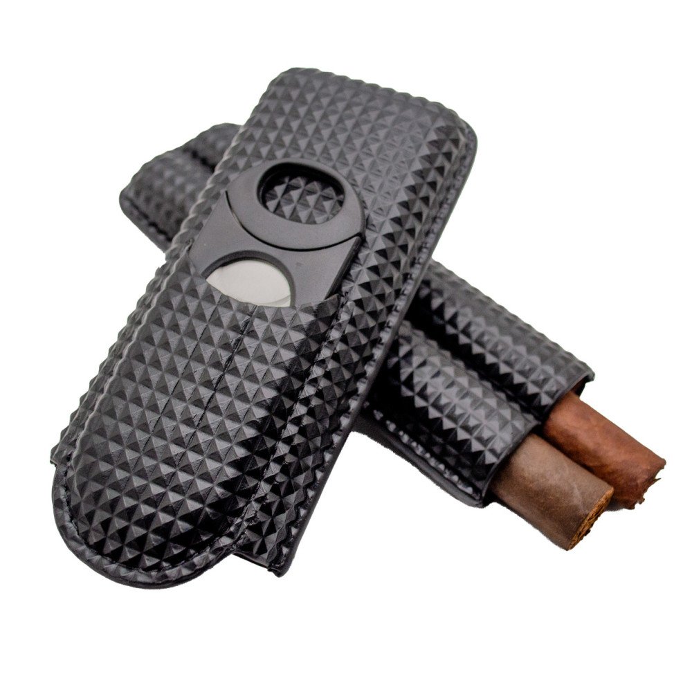 Marvel Diamond Pattern 2 Finger Leather Cigar Case with Cutter