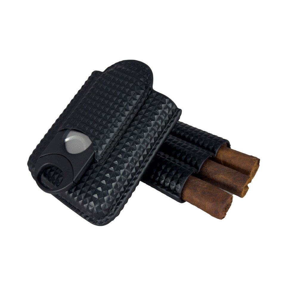 Marvel Diamond Pattern 3 Finger Leather Cigar Case with Cutter
