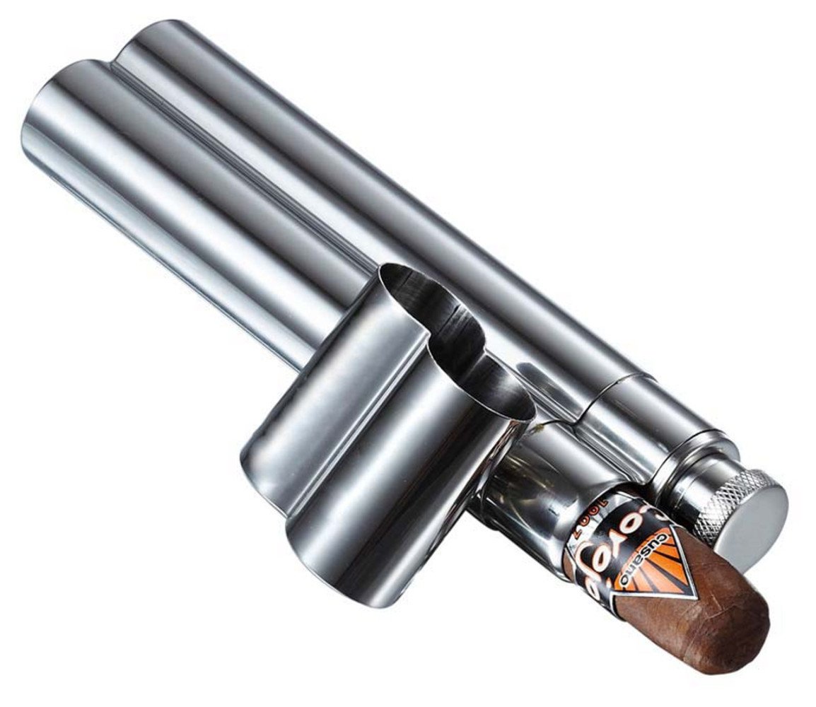 Crafted from top-grade stainless steel, this sleek body can accommodate a single cigar up to 50 ring gauge and houses a flask tube for holding 2 ounces of your favorite liquor. With dimensions of 5.71 oz., 7.08 in. in height, 1.76 in. in length, and 0.94 in. in width, it comes packaged in a Visol branded cardboard box that makes gift wrapping effortless. An ideal present for any cigar enthusiast!