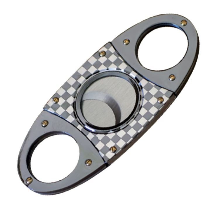 The Gunmetal Checkered Guillotine Cigar Cutter features a Double