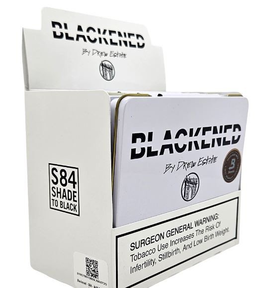 Blackened by Drew Estate S84 Shade to Black Tins offer a smooth yet flavorful interpretation of the Blackened cigar line, blending refinement with depth in a convenient tin format. Crafted by Drew Estate, the S84 Shade to Black features an Ecuadorian Connecticut shade wrapper that softens the blend while still allowing the rich core tobaccos to shine. This balanced cigar delivers creamy smoke with notes of espresso, light pepper, and natural sweetness, making it an approachable option for smokers who enjoy complexity without overwhelming strength.