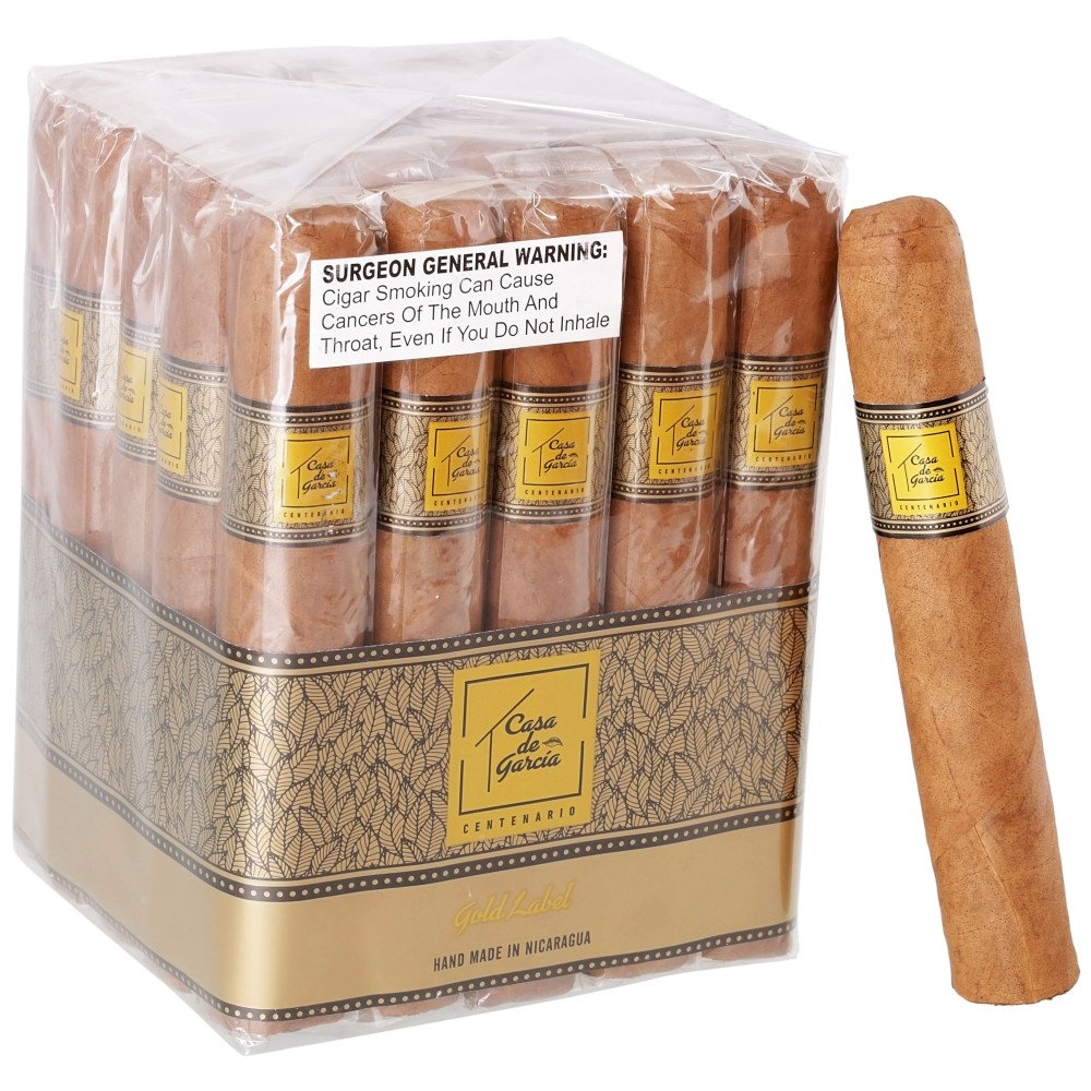 Casa de Garcia Centenario Gold Magnum delivers a smooth, approachable smoking experience that’s ideal for both everyday enjoyment and relaxed occasions. Crafted with a mellow Connecticut shade wrapper over a well-balanced blend of aged tobaccos, this cigar offers a creamy profile with subtle notes of toasted cedar, light spice, and a touch of natural sweetness. The Magnum size allows for a cool, even burn and an extended smoke, making it a great choice for those who appreciate a consistent, easygoing cigar that never overwhelms the palate.