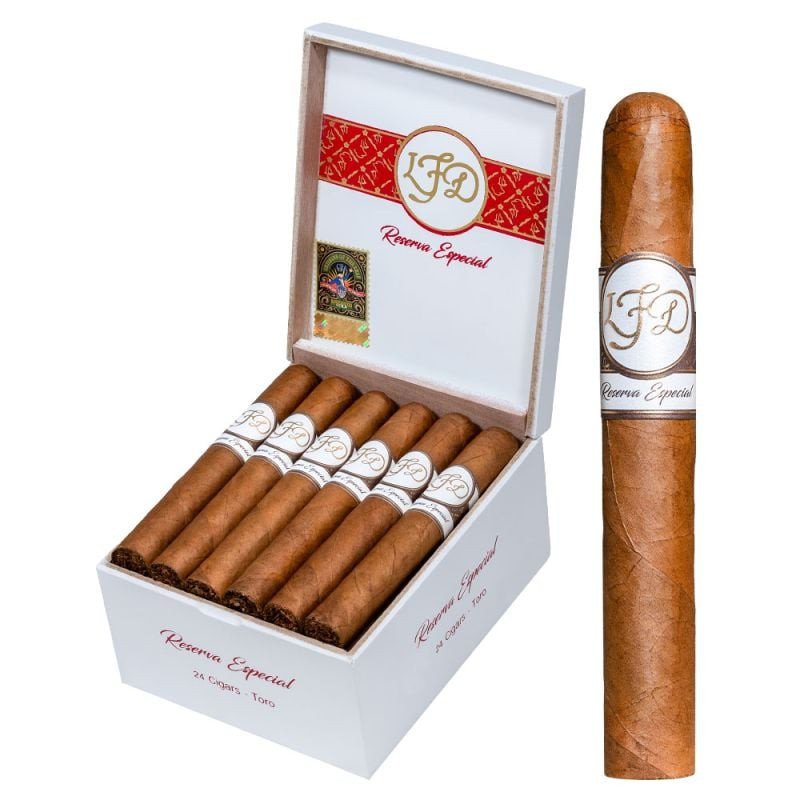 La Flor Dominicana Reserva Especial Toro delivers a bold, well-structured smoking experience that reflects the brand’s signature strength and craftsmanship. Wrapped in a flavorful Cameroon leaf and filled with well-aged Dominican tobaccos, this Toro offers a medium-to-full bodied profile that balances power with refinement. Notes of cedar, earth, black pepper, and a touch of natural sweetness unfold steadily, creating a smooth yet assertive smoke that remains engaging from first light to the final draw.
