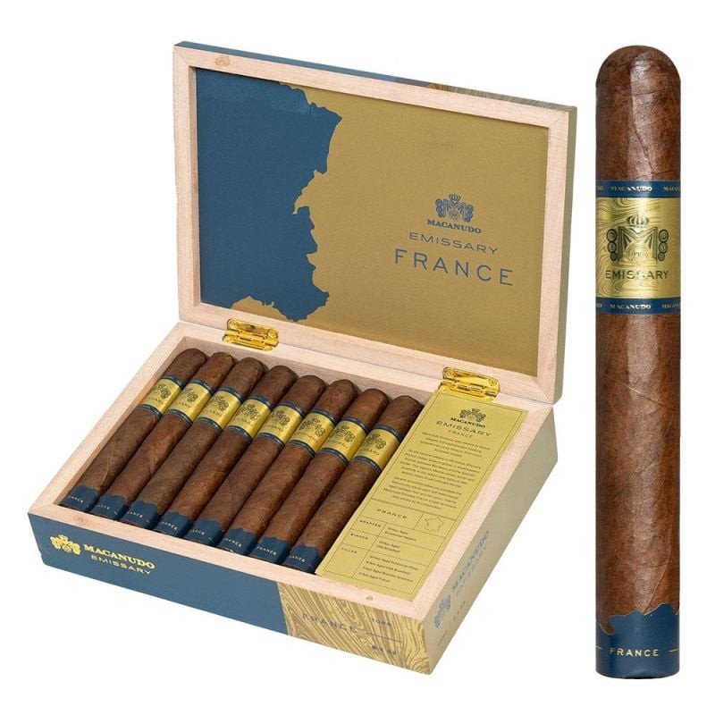 The Macanudo Emissary France Toro delivers a smooth, elegant smoking experience with a distinctive European influence. Crafted to highlight a rare French-grown tobacco, this Toro size allows the blend to open up gradually, offering refined layers of creaminess, subtle sweetness, and gentle spice. The longer format provides a cooler, slower burn, making it ideal for smokers who appreciate nuance and balance without excessive strength. It’s a polished, modern cigar that reflects Macanudo’s reputation for consistency while offering something refreshingly different.